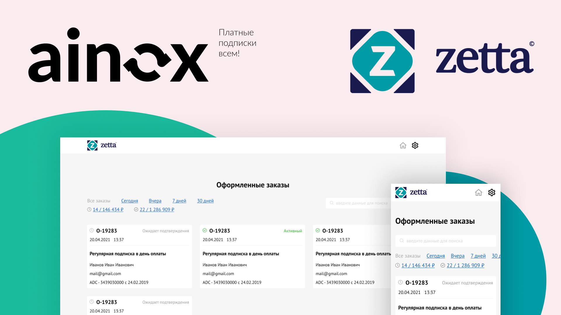 На момент публикации статьи сотрудничеству Ainox и Zetta почти год. За это время мы с нуля совместными усилиями разработали и запустили сервис оформления подписок в продающей сети на линейку продуктов компании. В продажах задействованы десятки продавцов.
